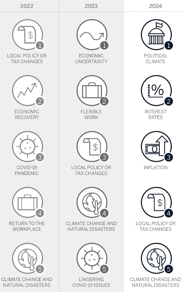 A look at what Sotheby’s International Realty agents pinpointed as the biggest issues facing their clients—from 2022 to 2024.