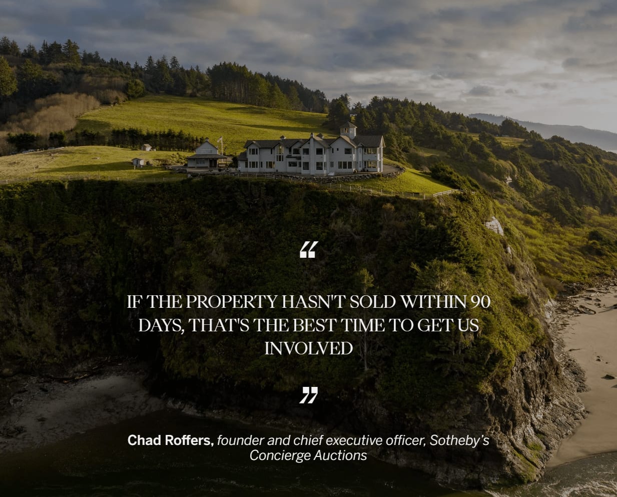 Roffers emphasizes that Sotheby’s Concierge Auctions is a good choice for a broad range of sellers. “The main thing I’d tell sellers is the sooner they decide to use us the better,” he says. “If the property hasn’t sold within 90 days, that’s the best time to get us involved.”