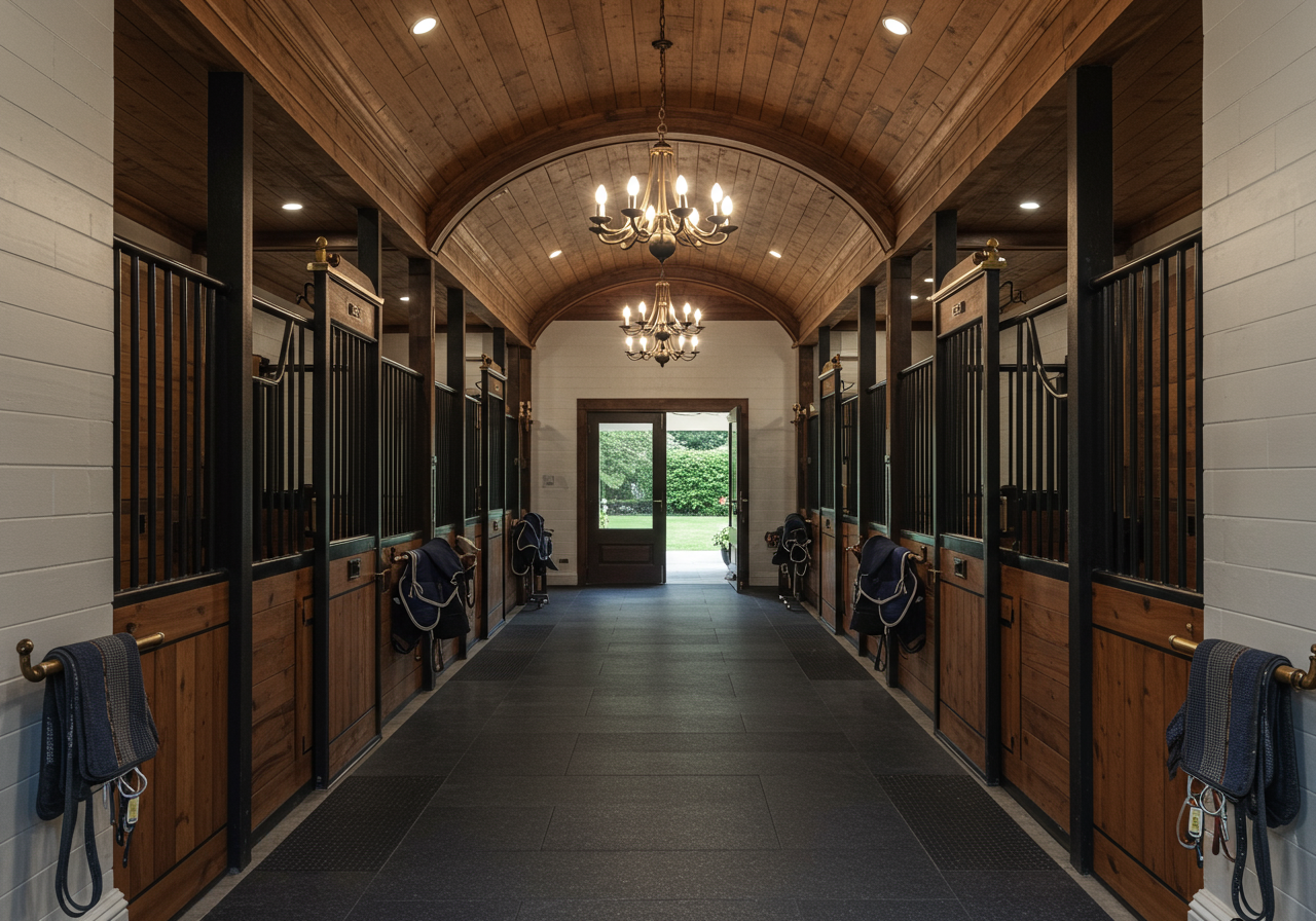 In Palm Beach Country, Florida, an equestrian’s dream comes true in the shape of a home accompanied by a 28-stall stable block. While the main house benefits from an outdoor pool, gardens, and lake, the large stable building includes tack rooms, lounges, bathrooms, wash racks, and grooming stalls, alongside the custom-built stalls to accommodate horses, all set around a generous outdoor riding arena.
