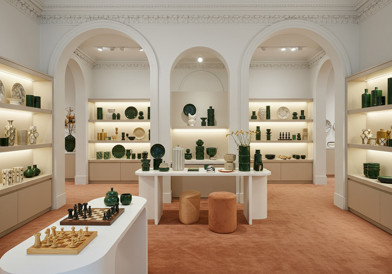 The first French outpost of this celebrated home decor store is nestled in the former antiques shop of Madeleine Castaing, an influential dealer in 20th-century France. It comprises two spaces: one devoted to textiles and dinnerware; the other to perfumes, candles and incense. The brand’s founder and creative director Elad Yifrach put architect Costantino di Sambuy, of LA studio Anno Mille, in charge of the pared-back yet playful design.