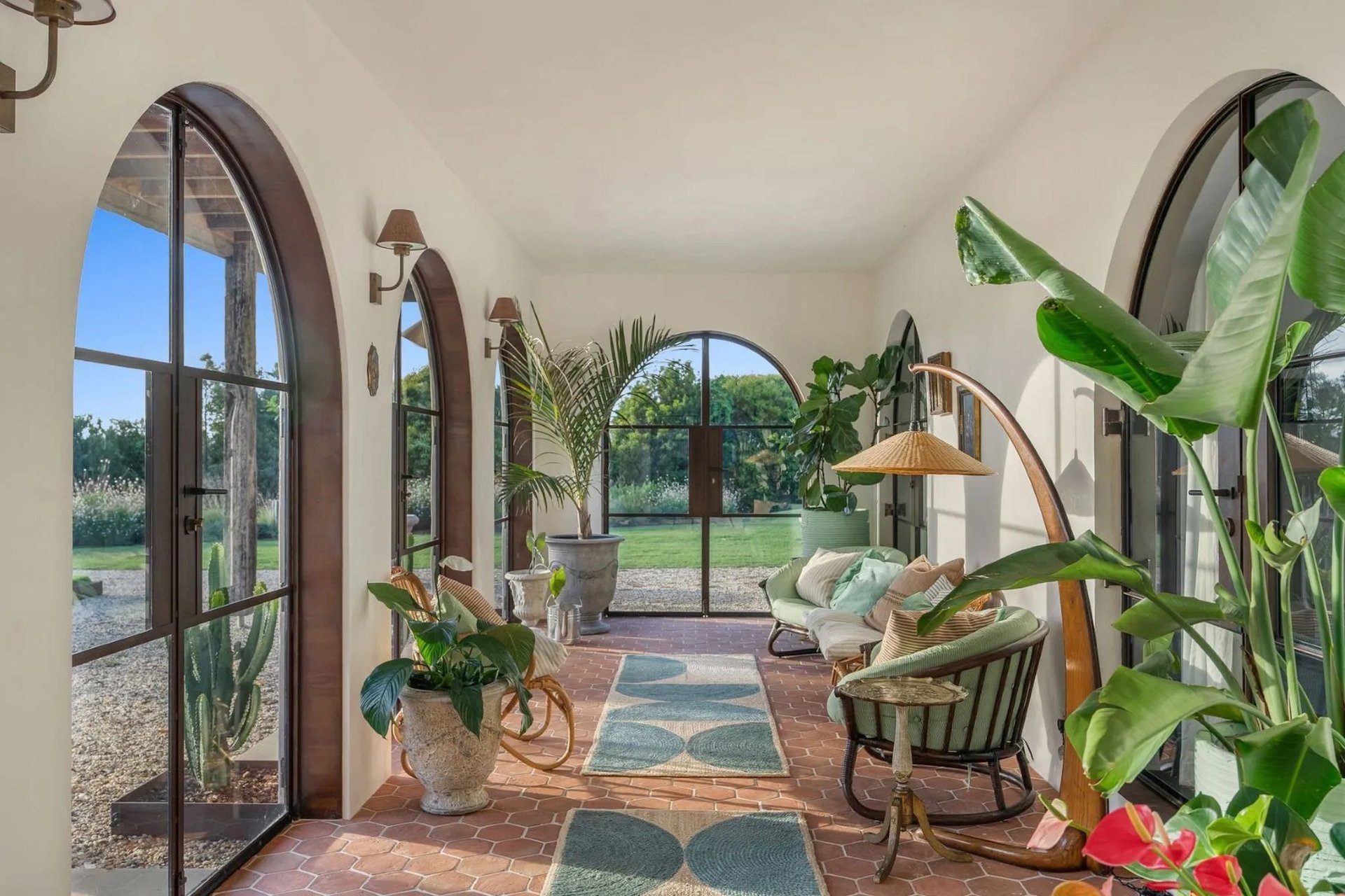 Lo Scoglio, perched on a crest in Coopers Shoot near Byron Bay, Australia, exemplifies this approach. Conceived as a contemporary reinterpretation of a Sicilian masseria (rural estate), the main villa and guest house are united in their sensitive use of craft—from hand-chipped limestone walls, century-old hardwood floor and terracotta finishes to brass details sourced through Tigmi Trading. In a contemporary take on crafted luxury, the estate blends these artisanal details with modern systems, including solar power and rainwater harvesting.